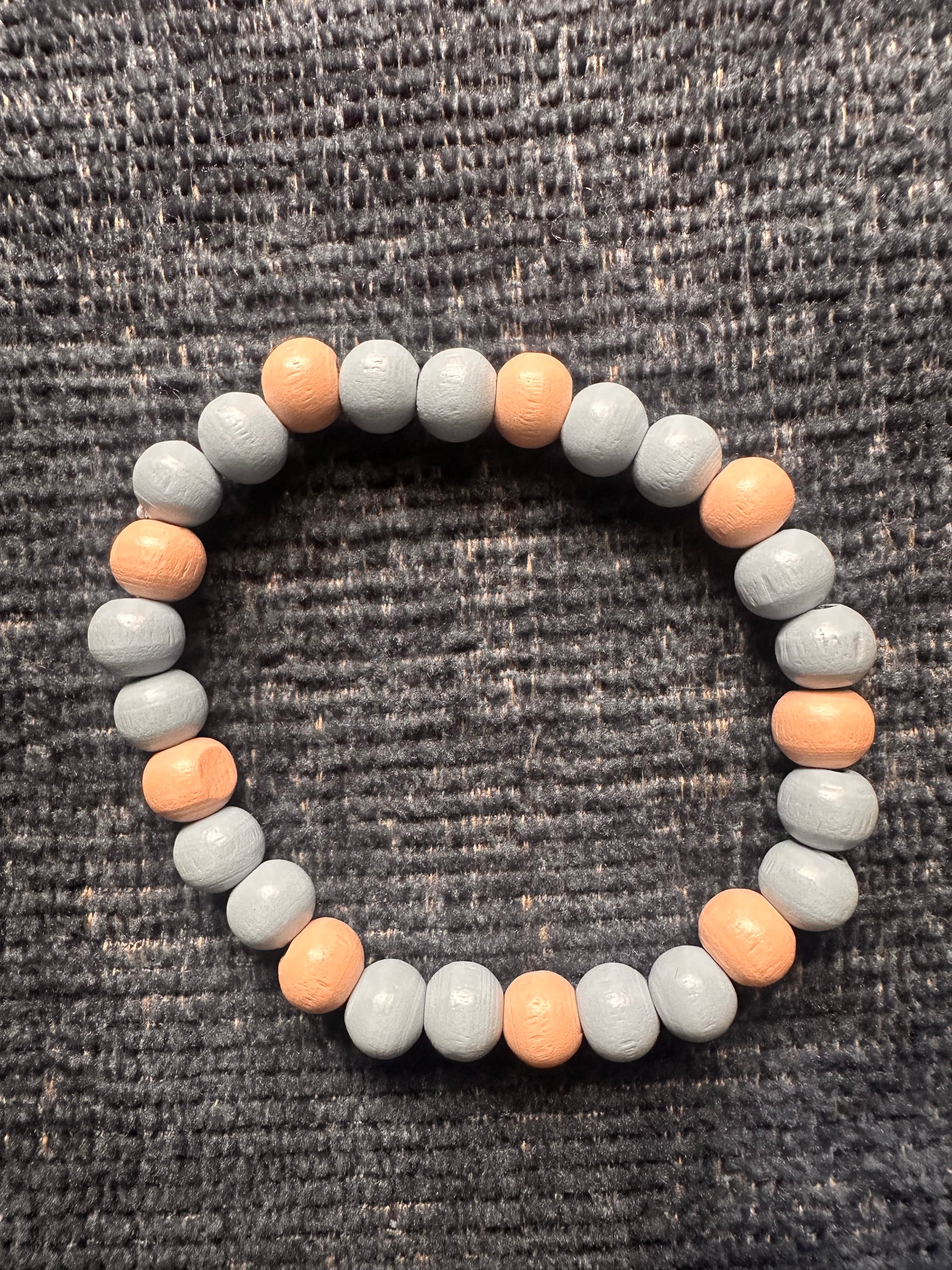 Blue and Brown Hand Strung Beaded Stretch Bracelet