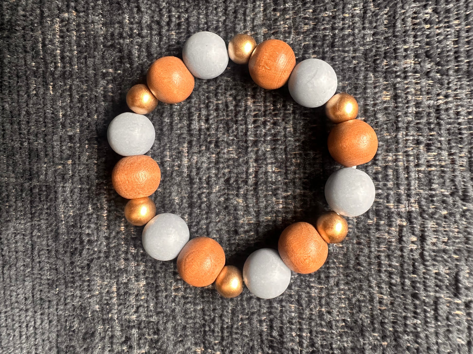 Blue, Brown and Gold Hand Strung Beaded Stretch Bracelet