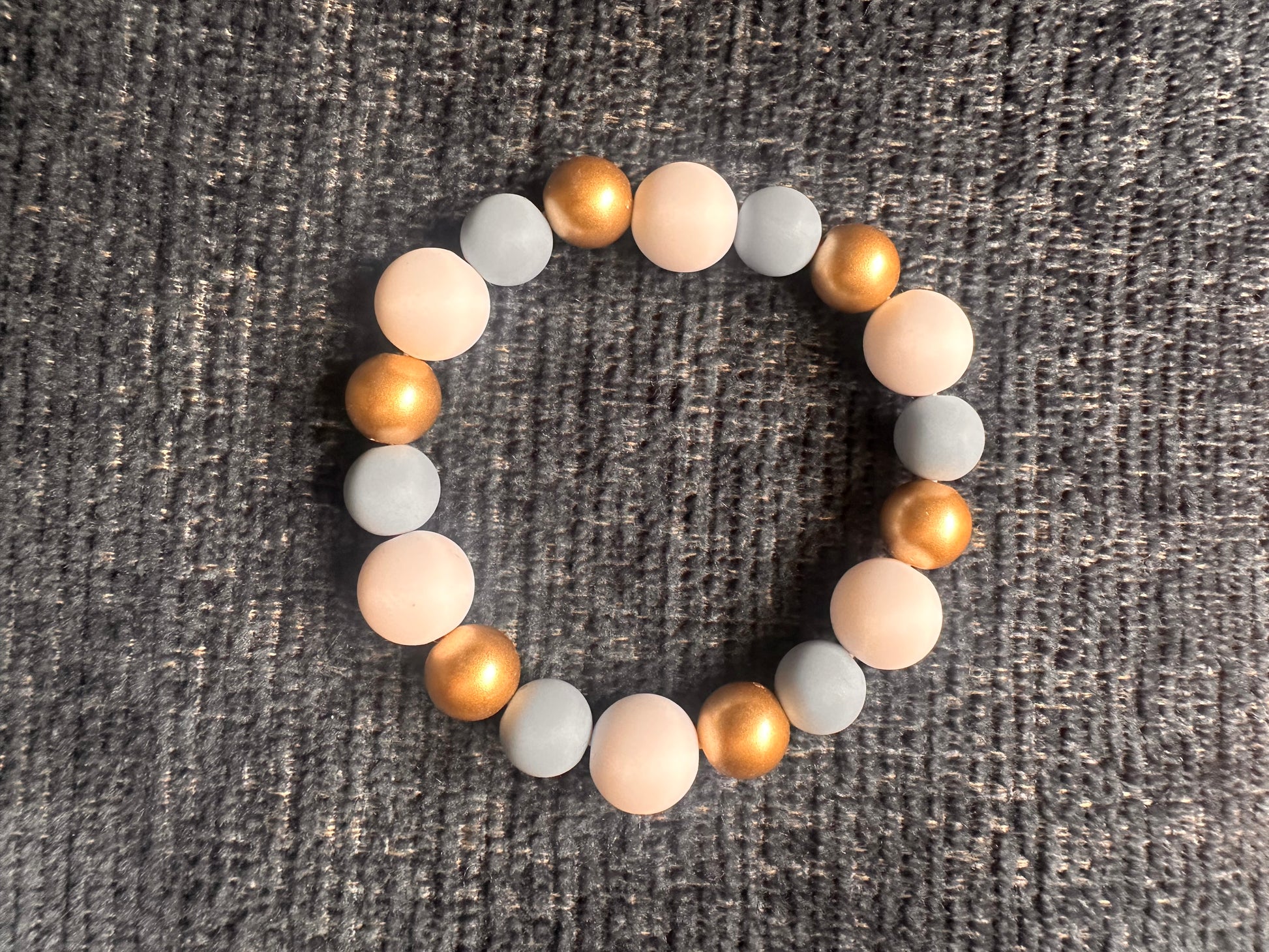 Blue, White and Gold Hand Strung Beaded Stretch Bracelet
