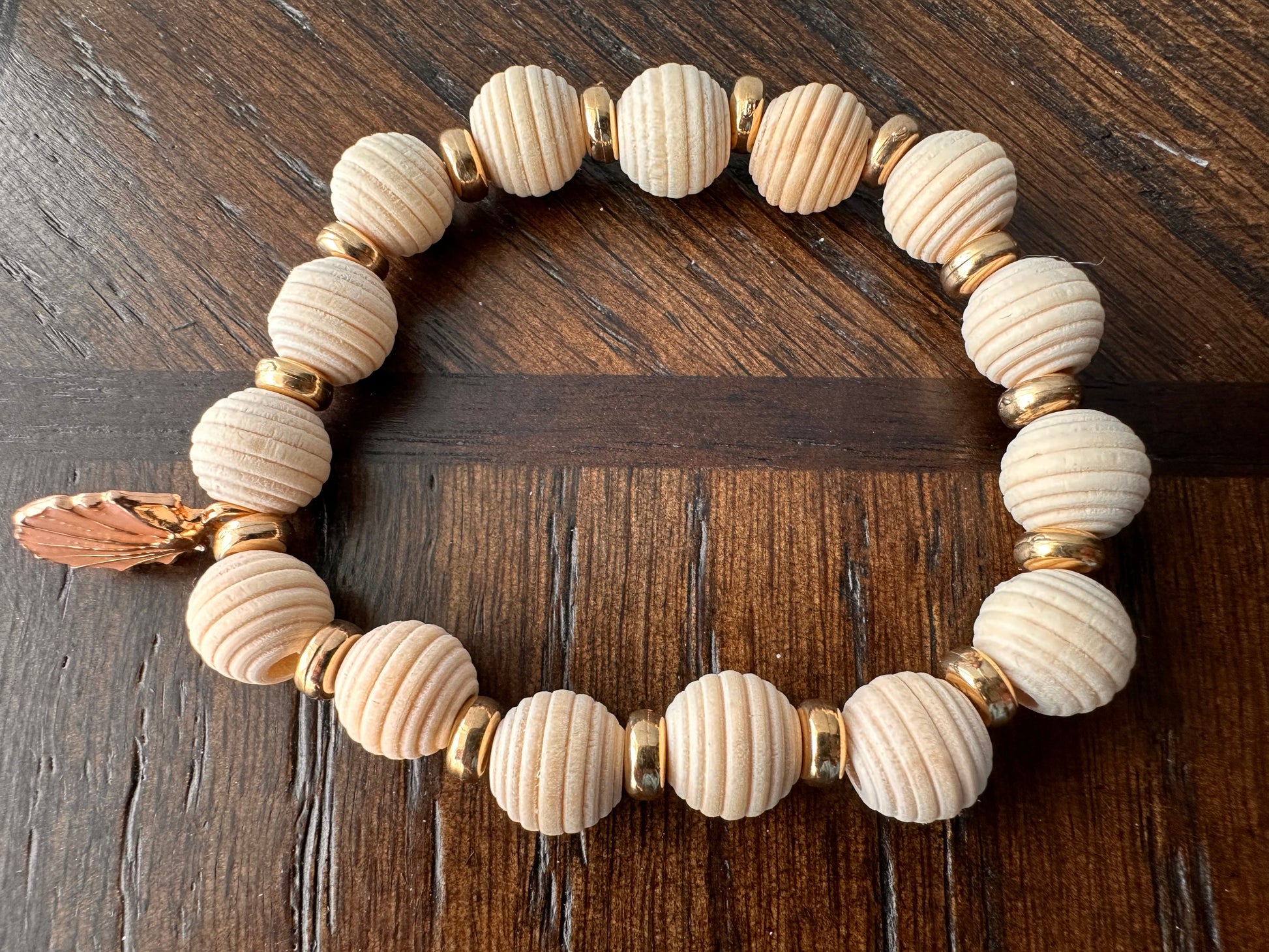 Hand Strung Cream and Gold Sea Shell Bracelet