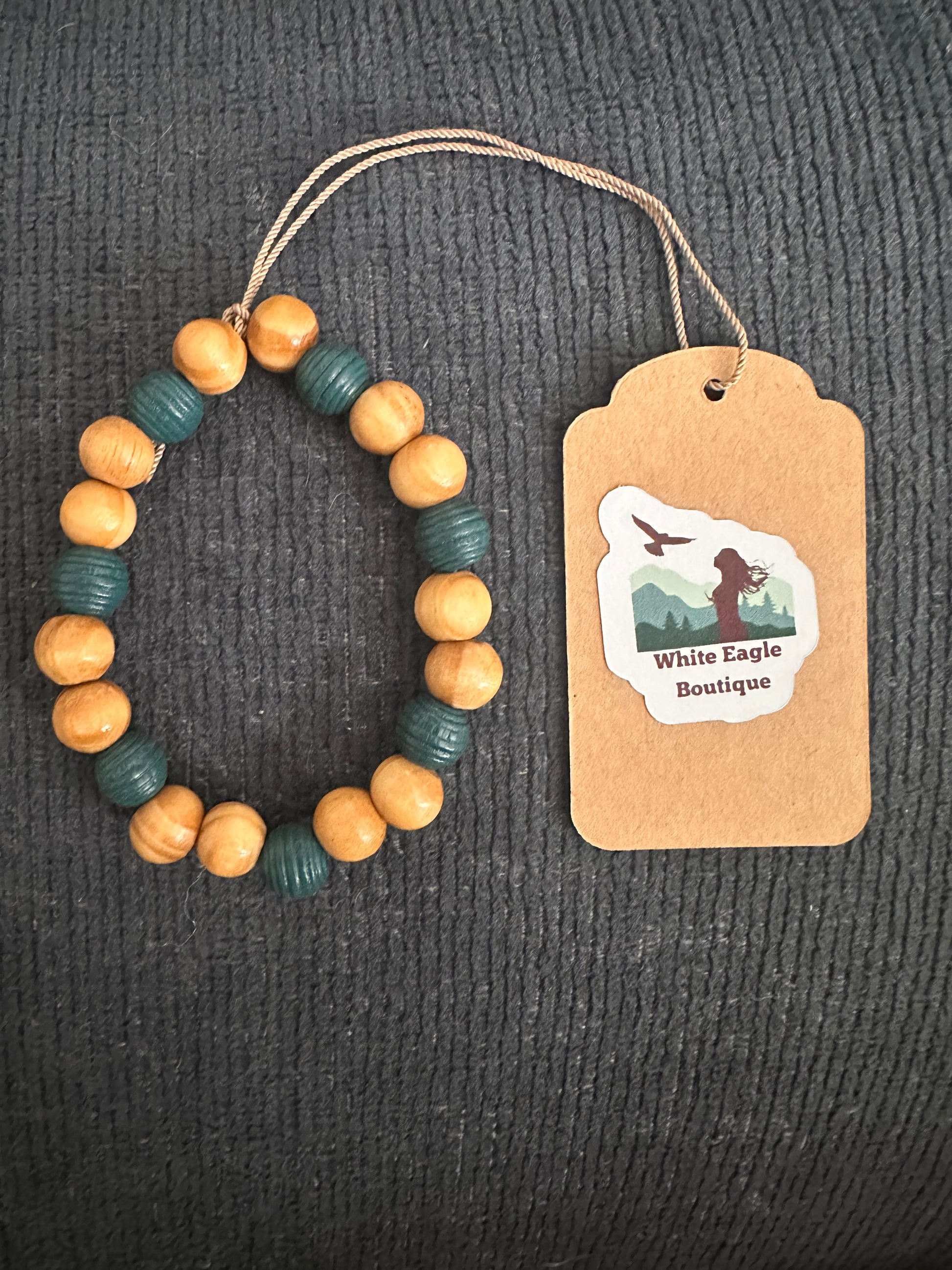 Hand Strung Wooded Beaded Bracelet. Item in photograph will the actual item you will receive.