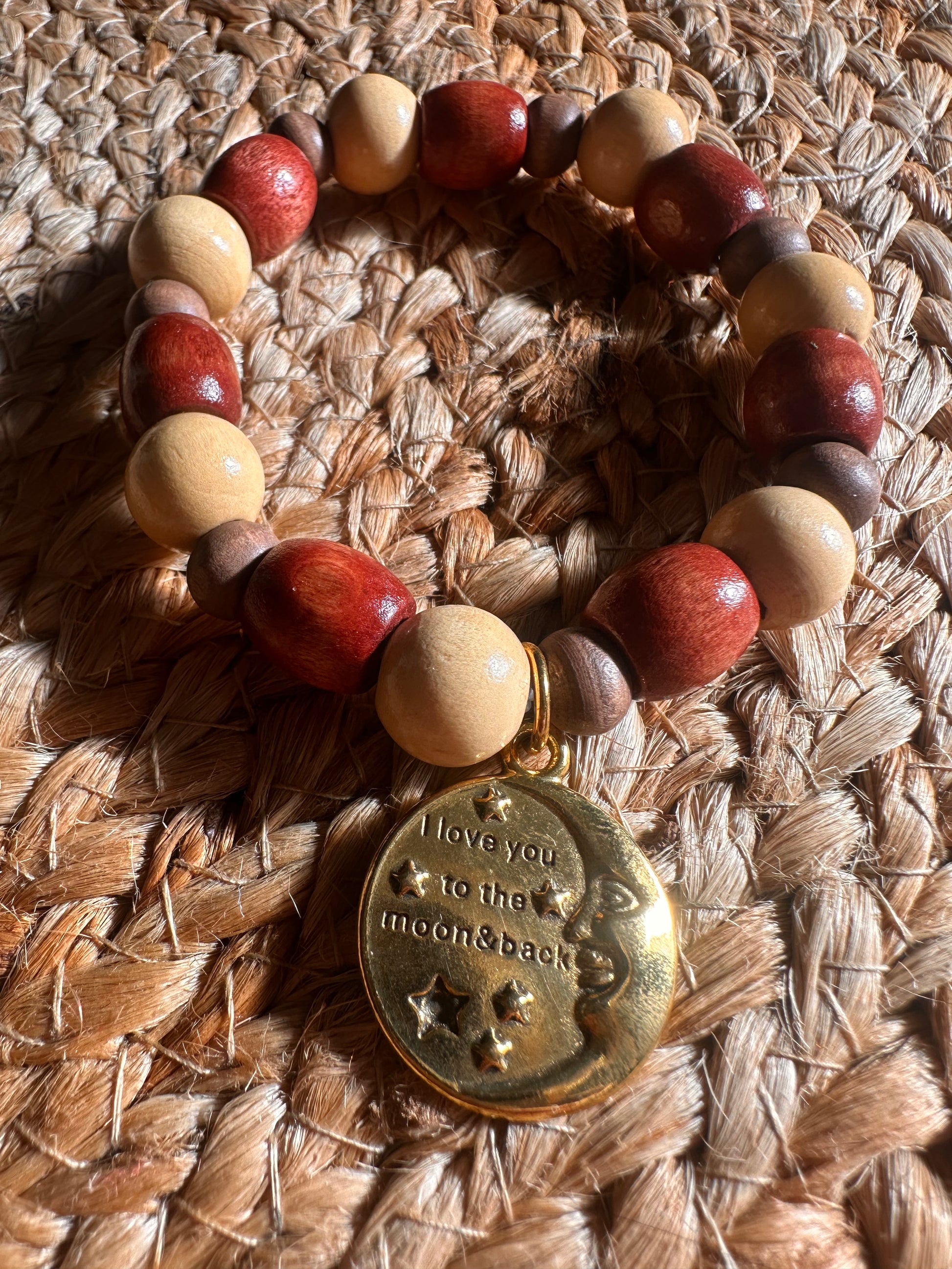 Inspirational Hand Strung "I Love You To The Moon And Back" Stretch Charm Bracelet